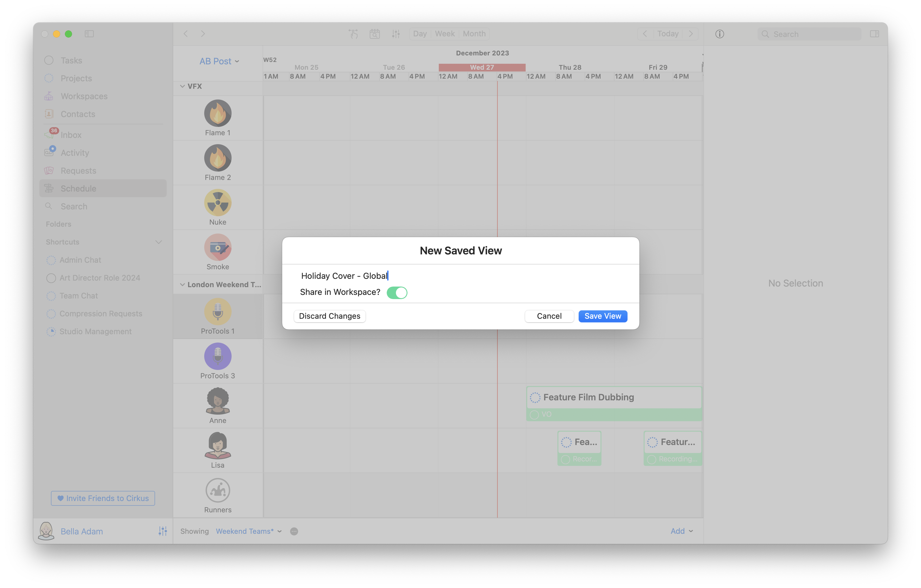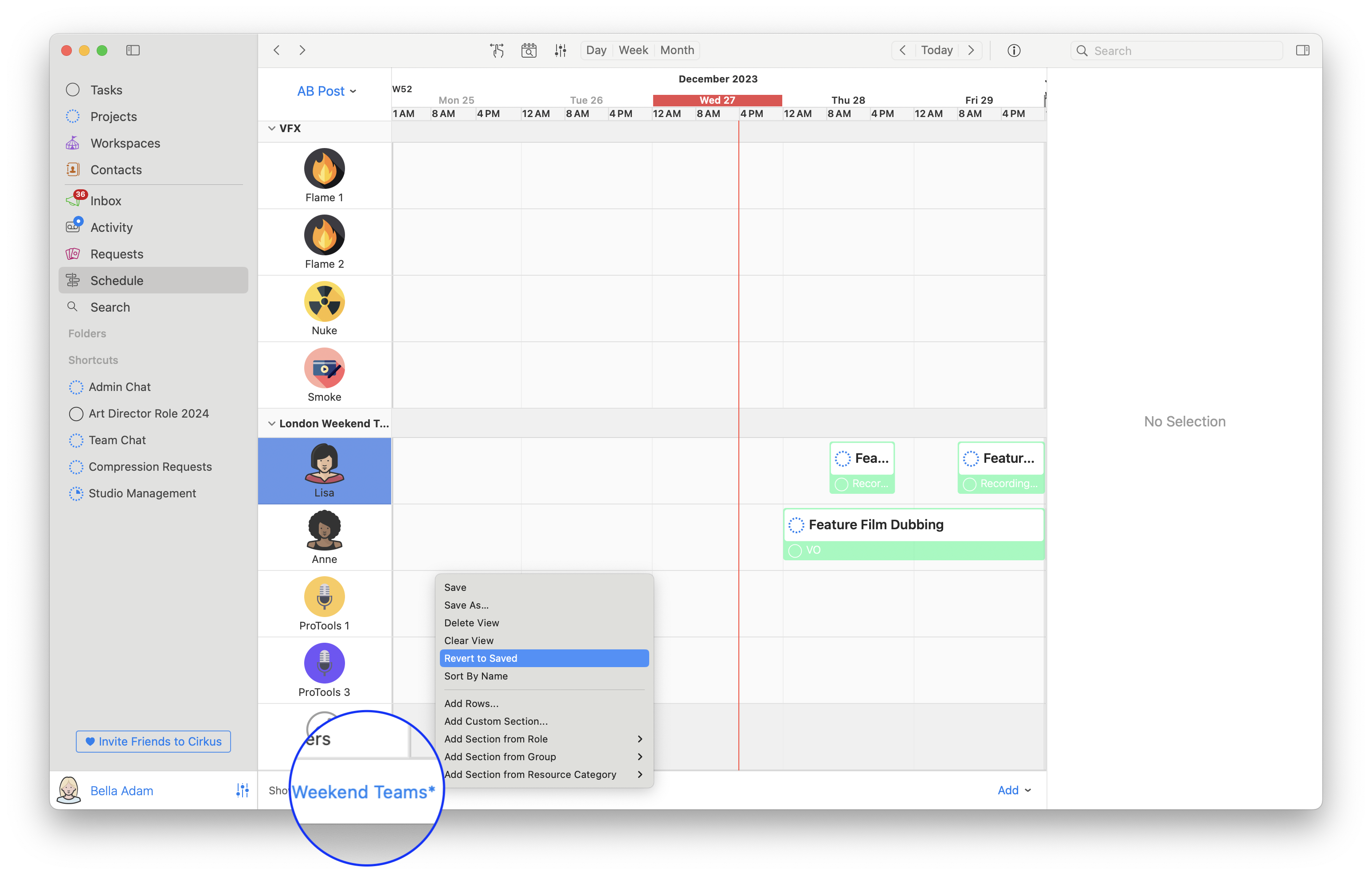 Editing the View in the Schedule on Cirkus Mac