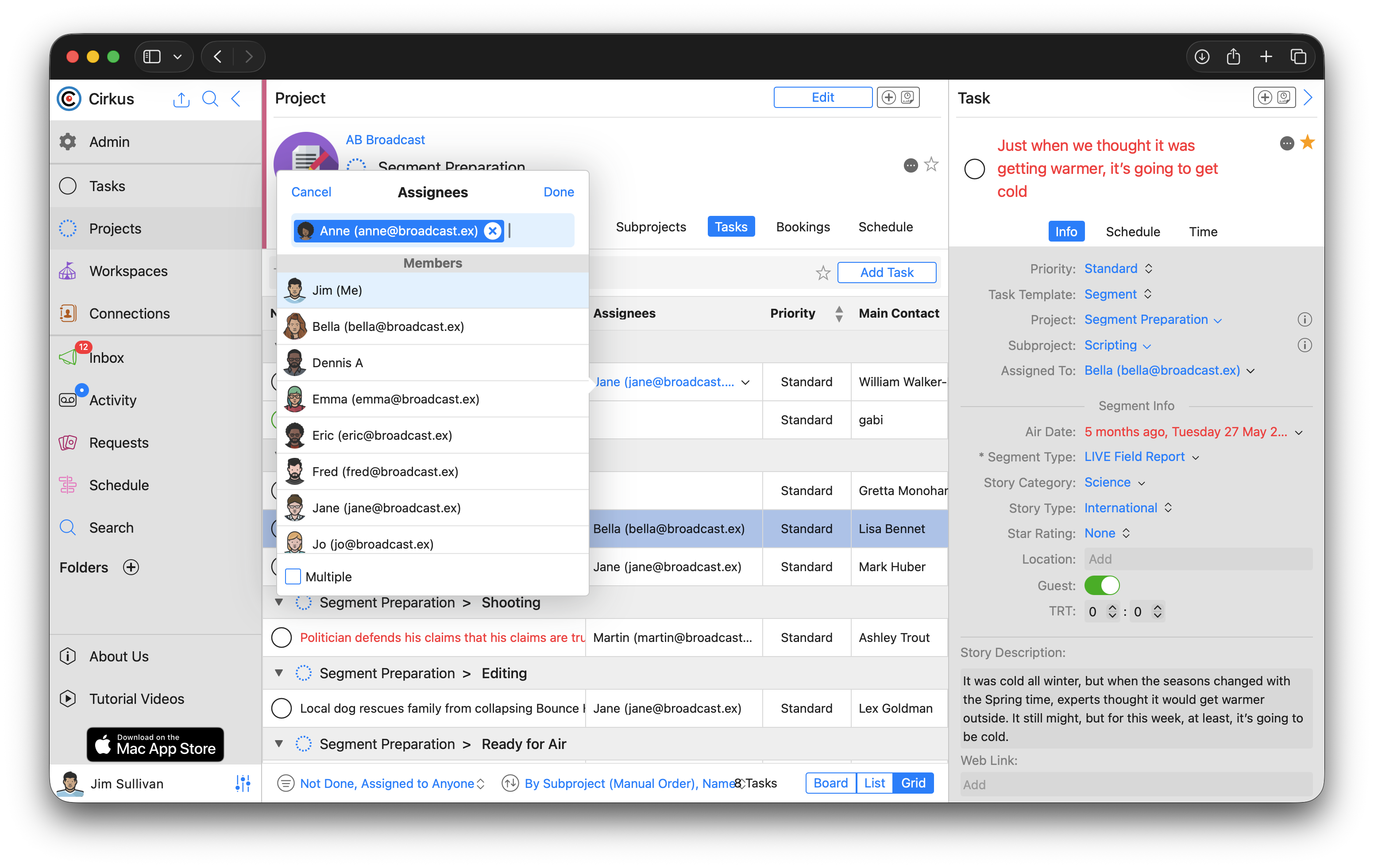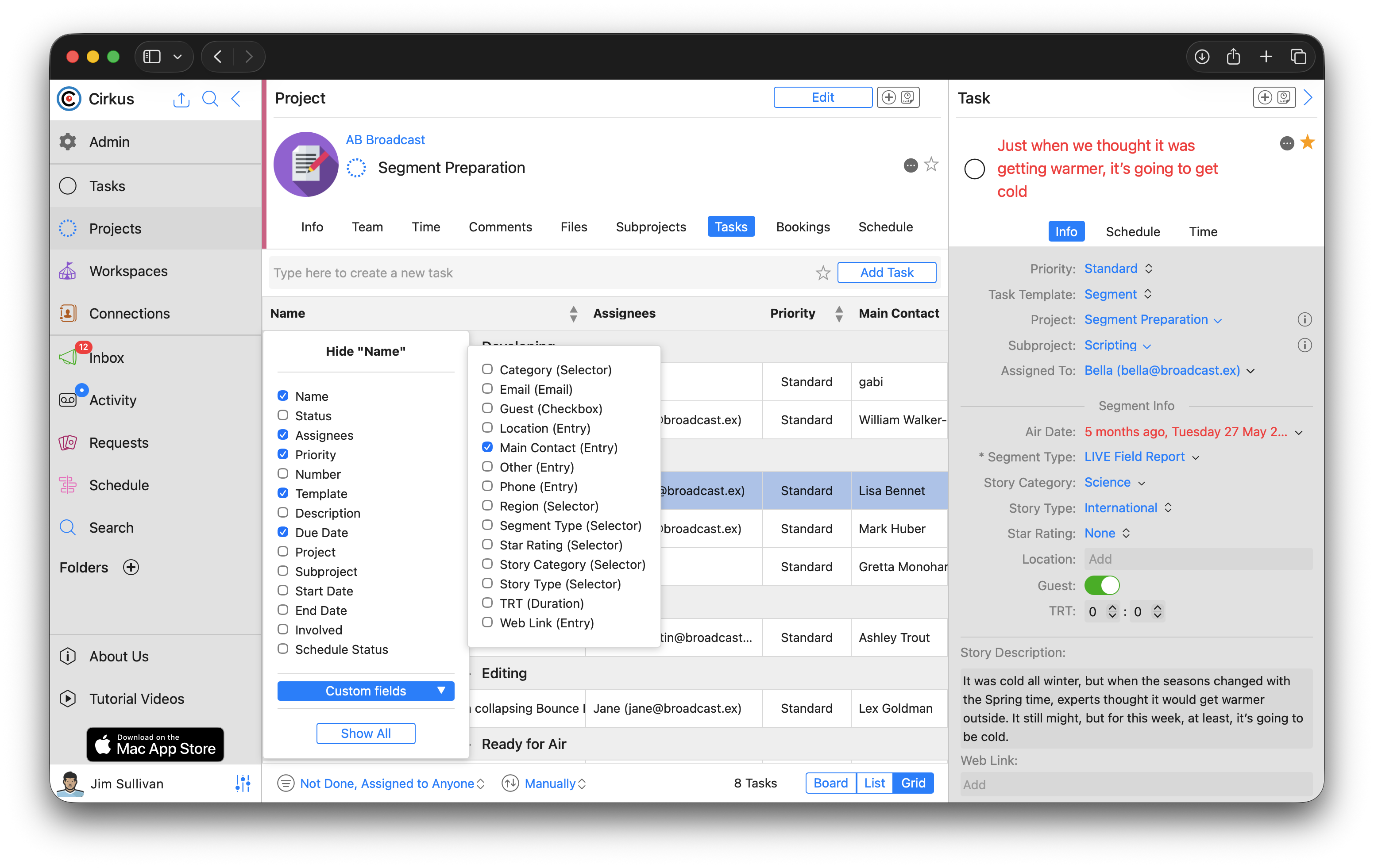 This is the main Tasks list in Grid view on Cirkus macOS app.