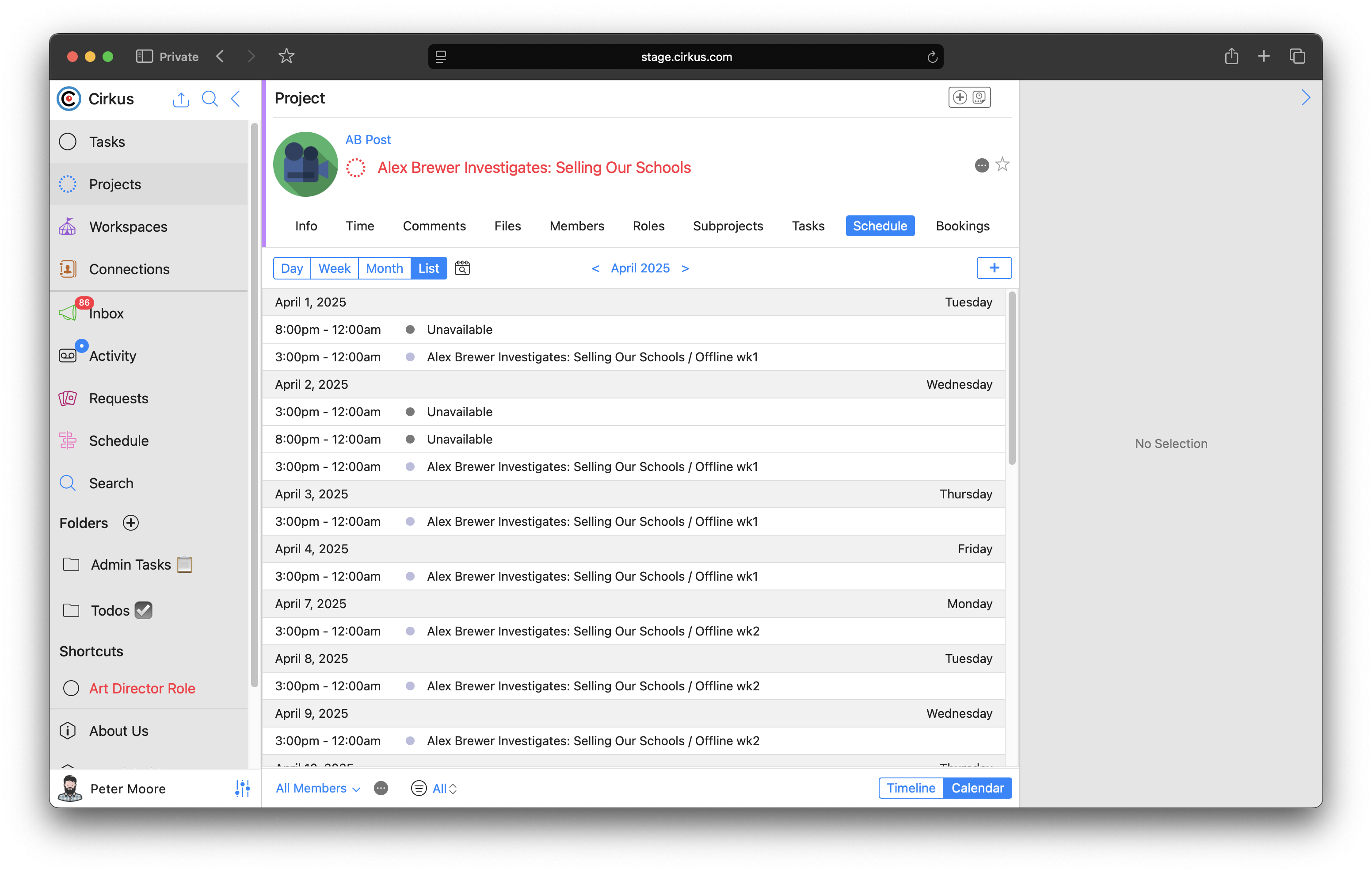 In Cirkus there are multiple Schedule views, which can be used depending on the type of work you need to do.