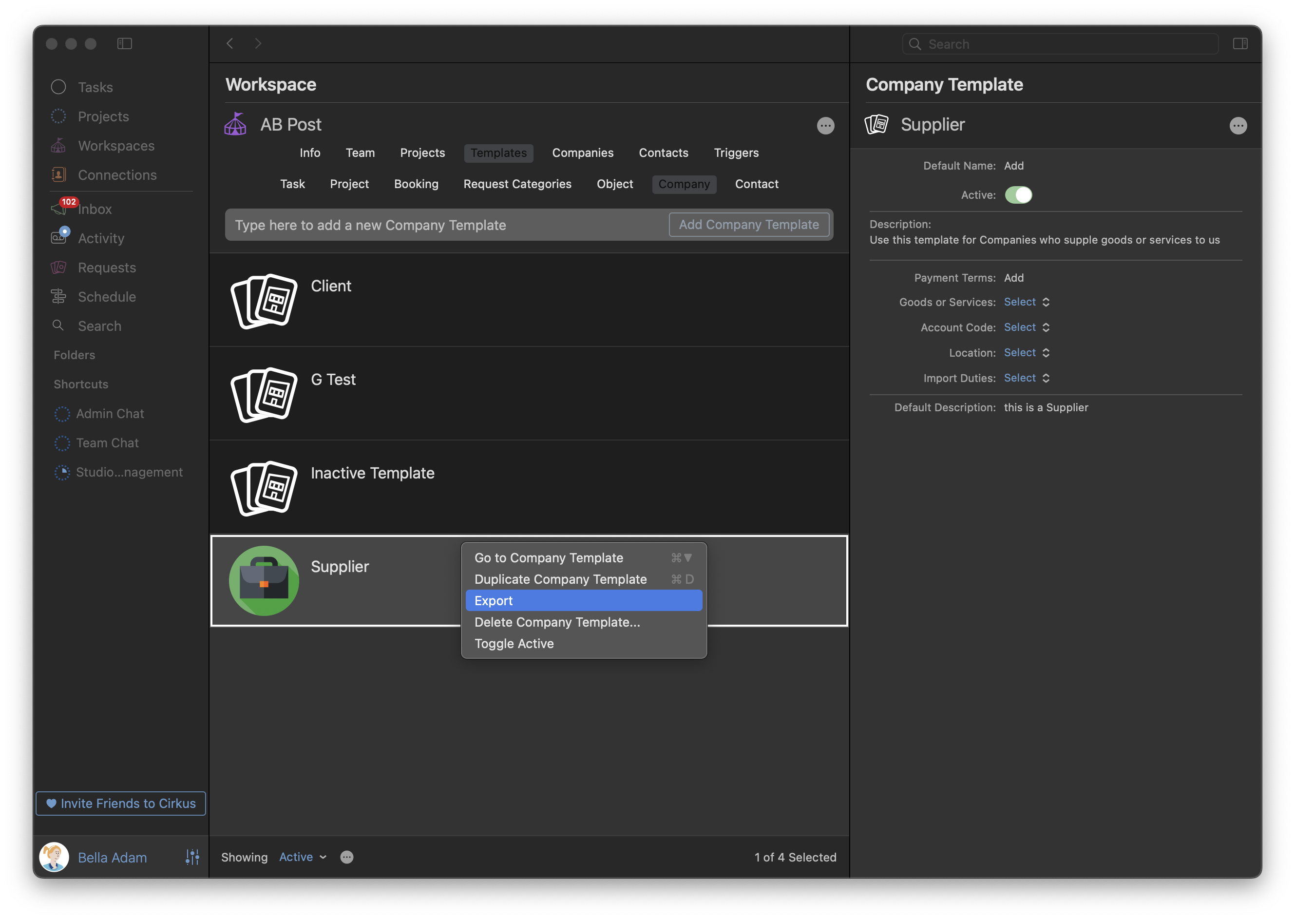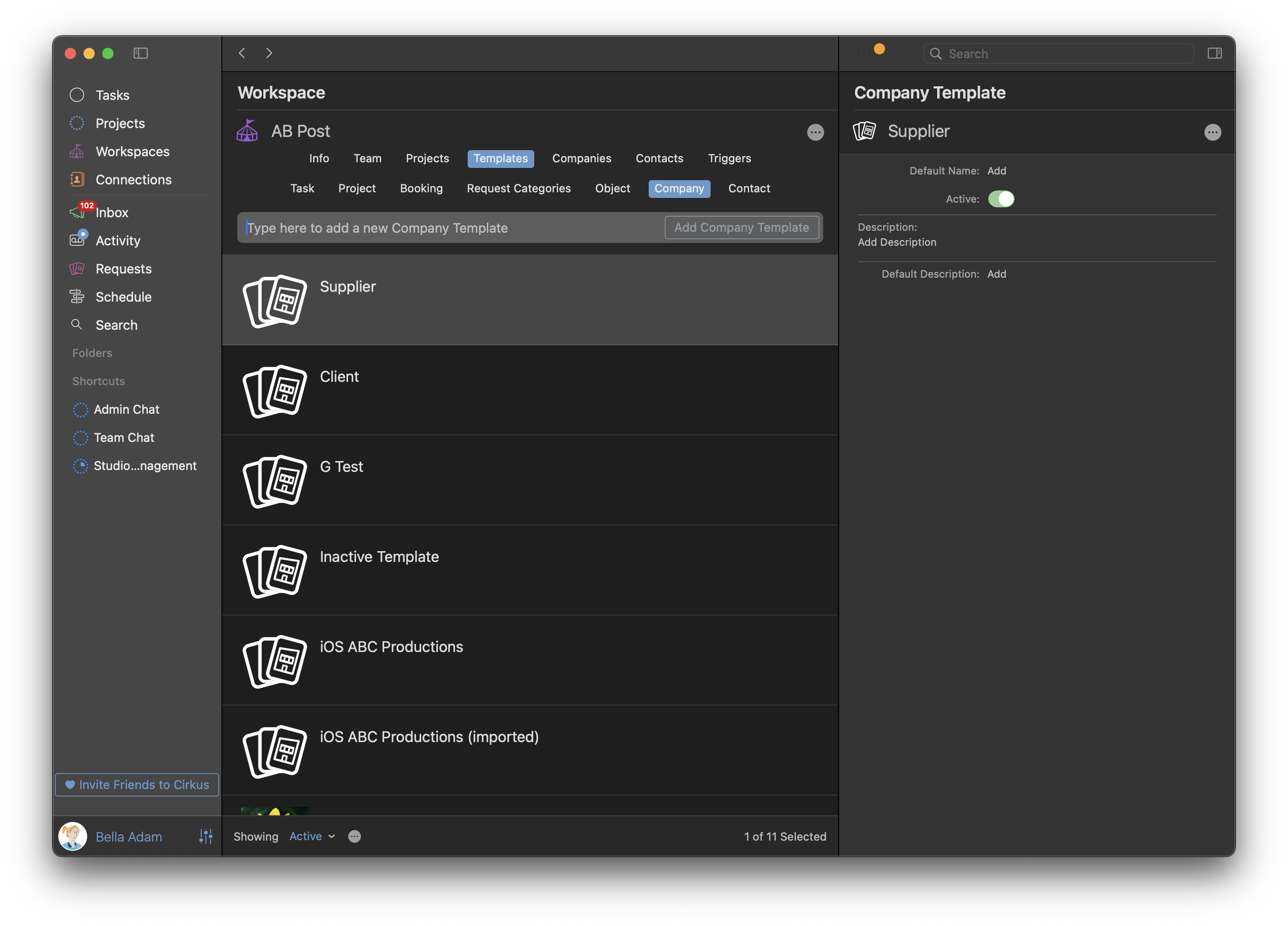 In Cirkus, Company Templates are predefined structures used to standardize the top level information for a Company across Projects. They allow users to create consistent company records by defining specific Fields such as name, description and custom attributes relevant to a Supplier, Client or other Organisation.