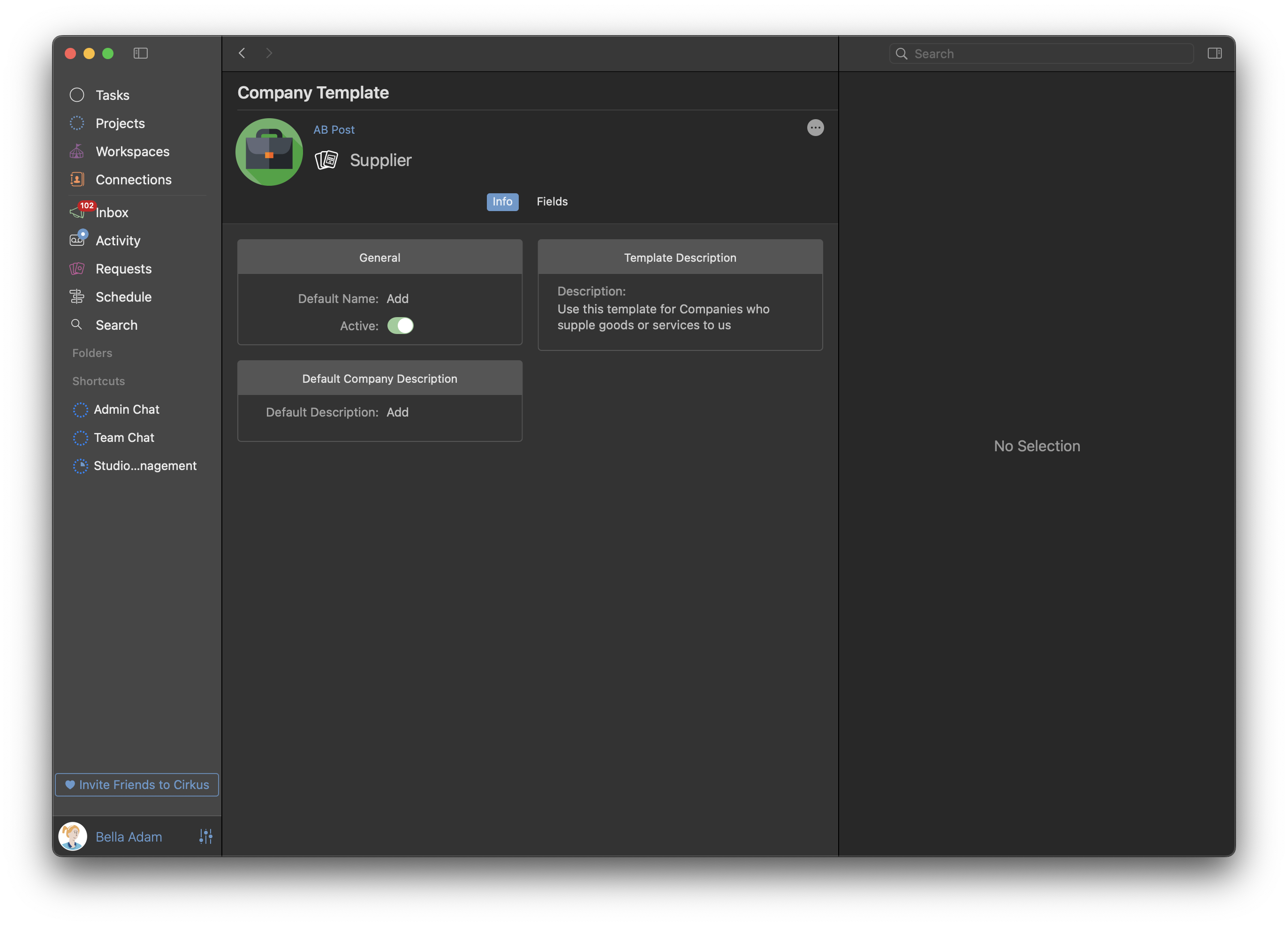 Note: If you change the Company template, Cirkus will attempt to keep the fields and values which match in name and type