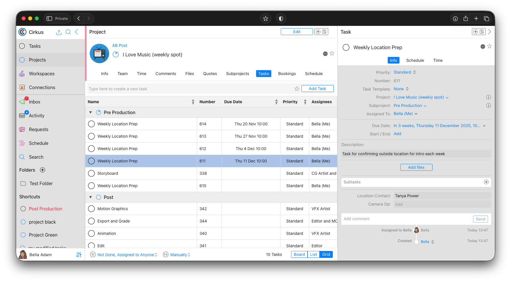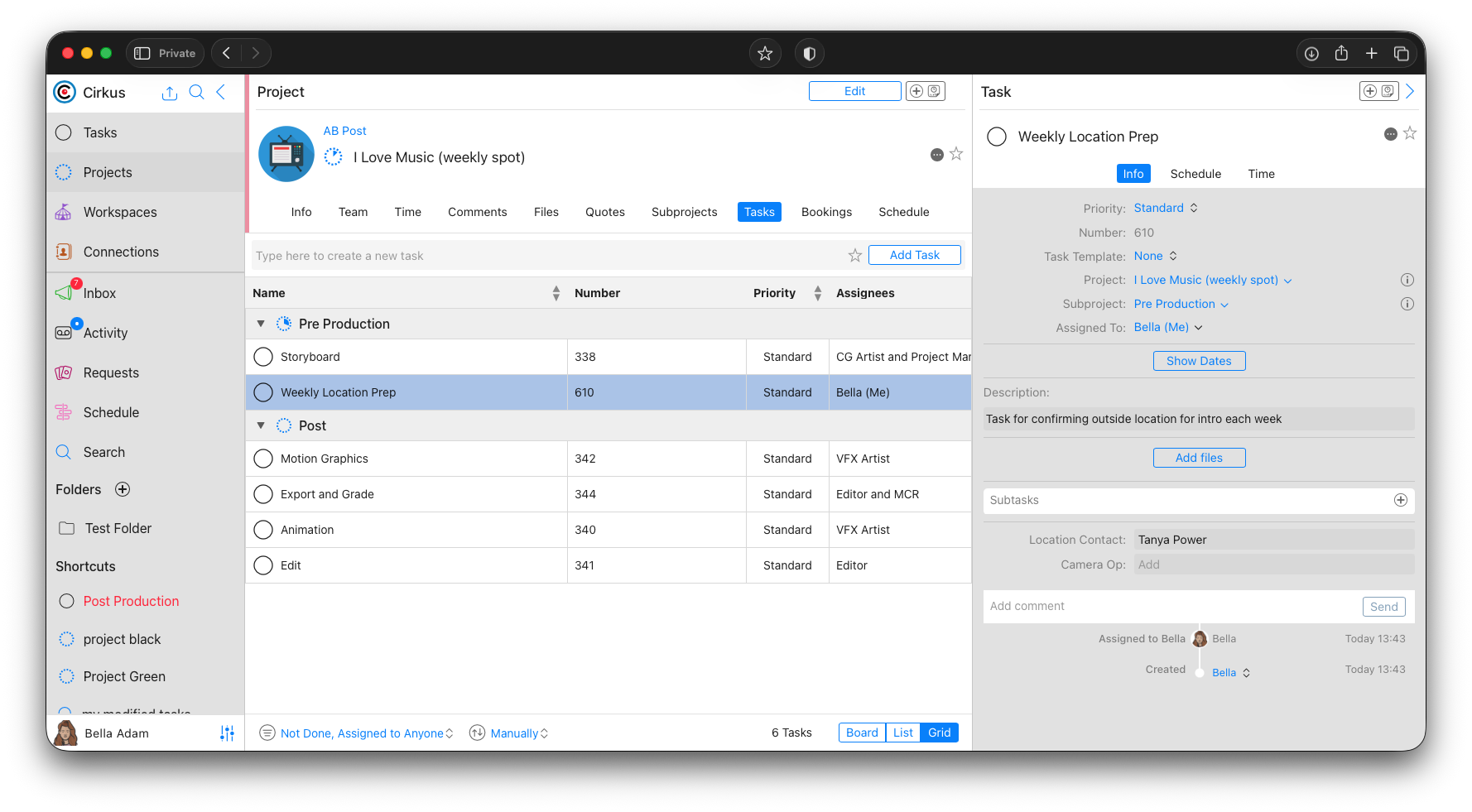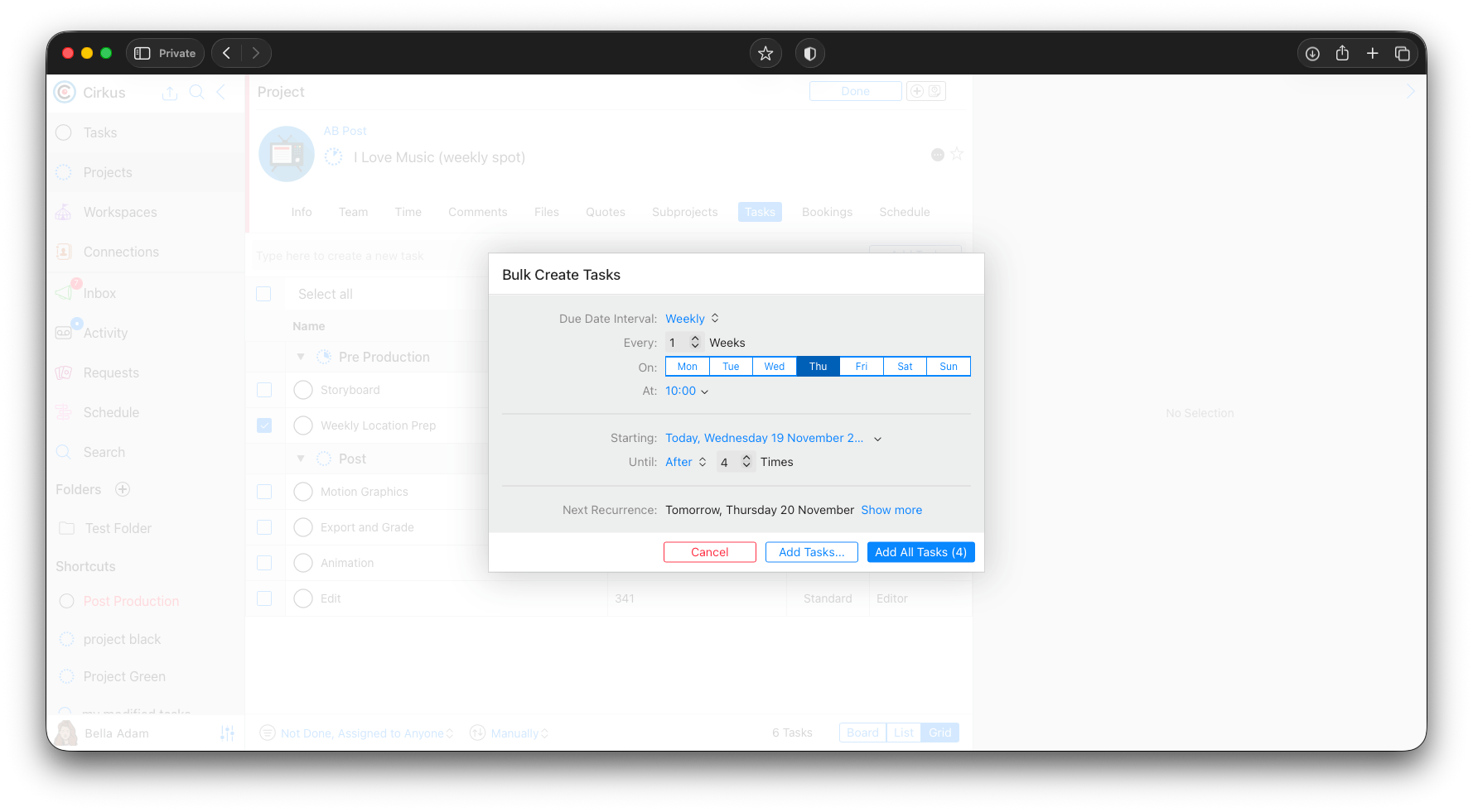 - Add Tasks...: This will open a new dialog for each New Task where we can update other information we might want to change, like the name, or Camera Operator for each week