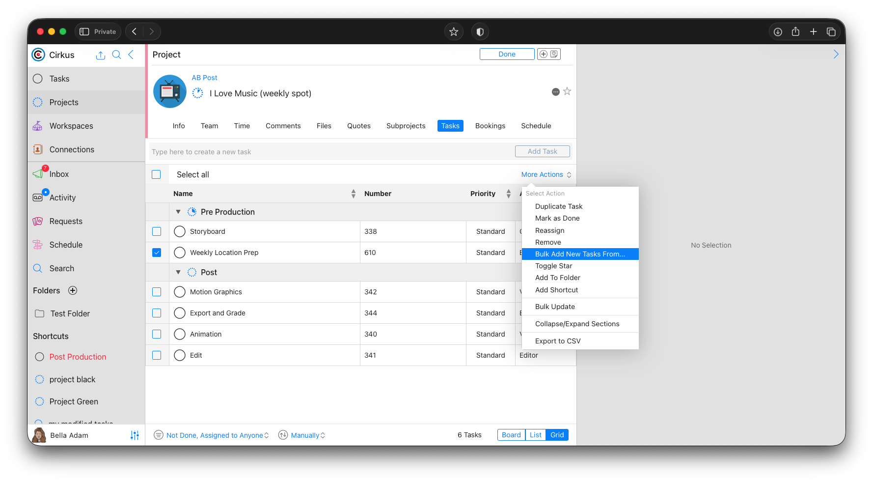 - Click on Edit > More Actions > Bulk Add New Task From... (or right click on Mac/swipe on iOS)